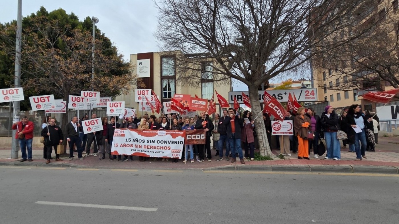 CCOO y UGT se concentran ante el Hospital Mesa del Castillo por el bloqueo del convenio de la sanidad privada