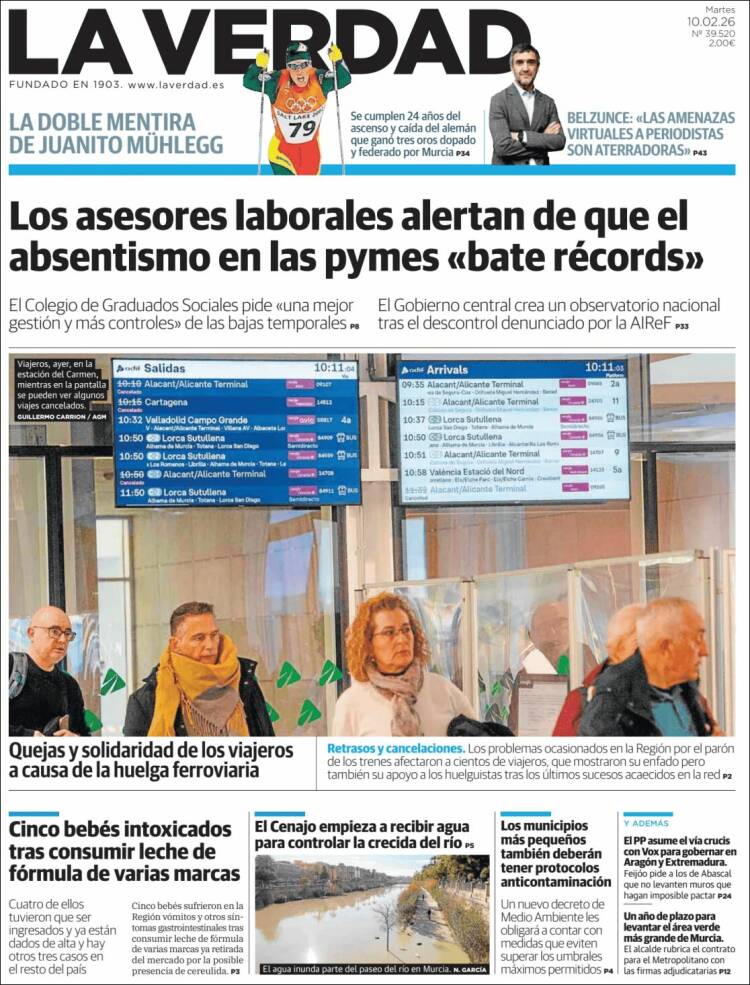 Portada del diario LA VERDAD DE MURCIA del día 10/02/2026