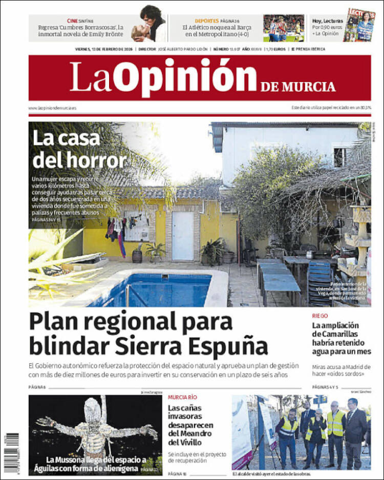 Portada del diario LA OPINIÓN DE MURCIA del día 13/02/2026