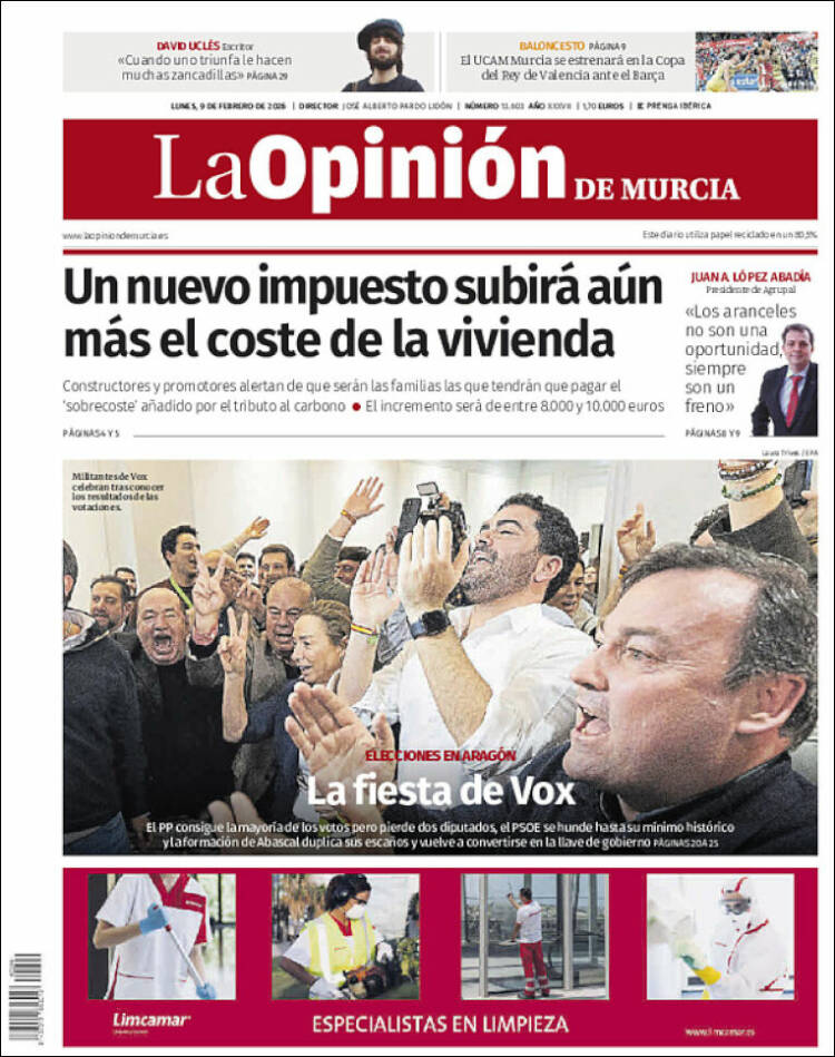 Portada del diario LA OPINIÓN DE MURCIA del día 9/02/2026
