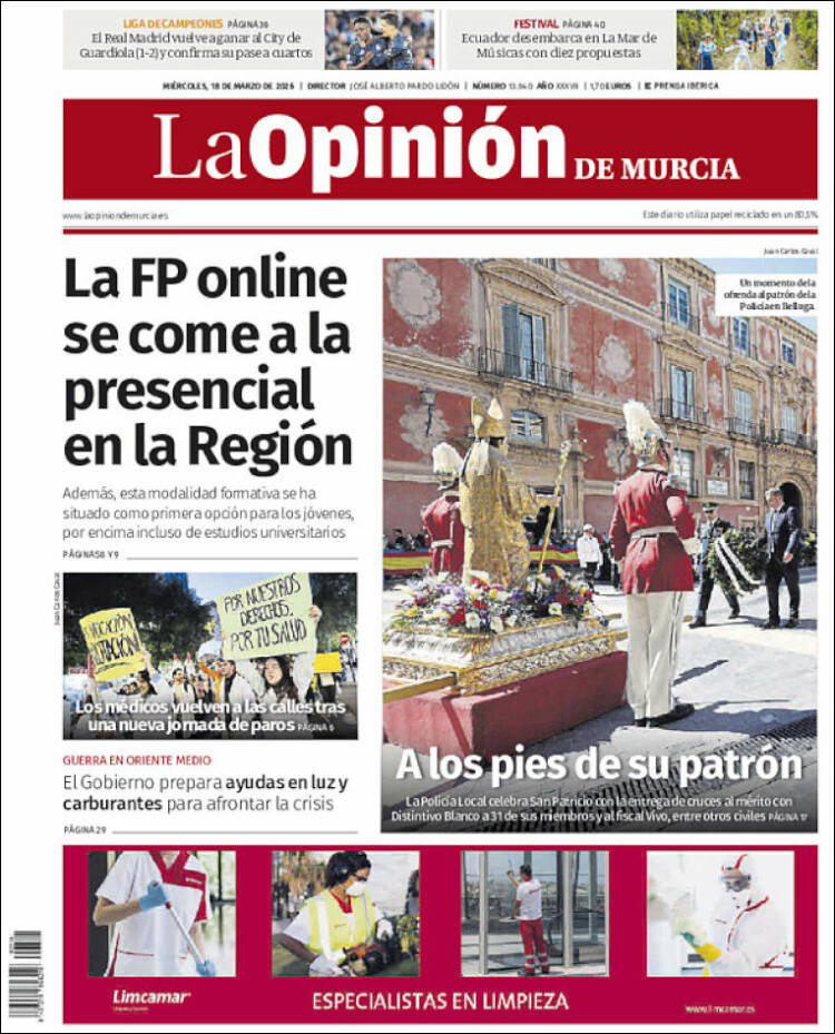 Portada del diario LA OPINIÓN DE MURCIA del día 18/03/2026