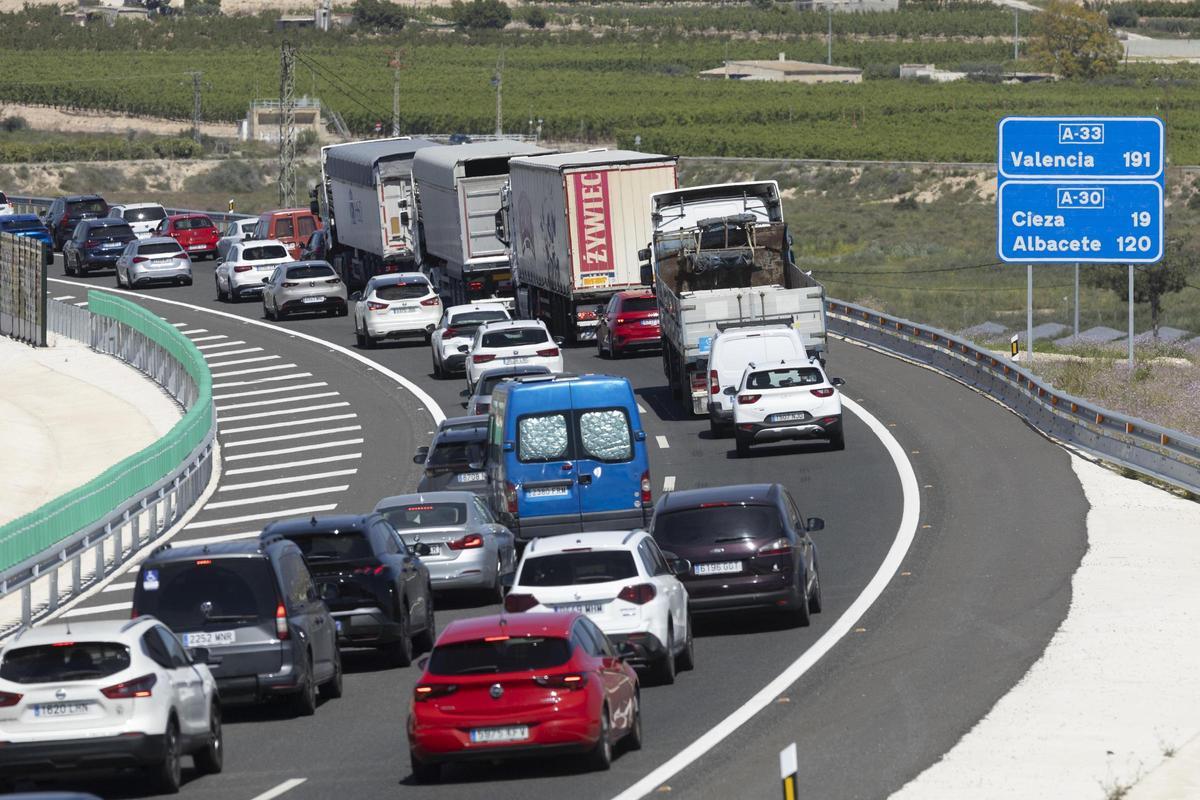 La vuelta de las vacaciones de Semana Santa provocó importantes atascos esta mañana en la Autovía A-30 y la MU-32 en Archena Retenciones en el Arco Noroeste / Marcial Guillen /…