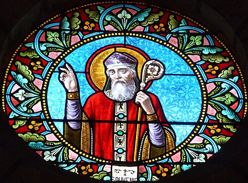 Santoral católico Vidriera con San Frontis de Périgord en la iglesia de Saint-Pierre-ès-Liens, Lalinde (Francia). San Asaco. San Benito de Aviñón. San Bernardo de Tiron. San Frontón (imagen ilustrativa). San Juan de Montemarano. San Lamberto de Lyon. Santa Liduvina…