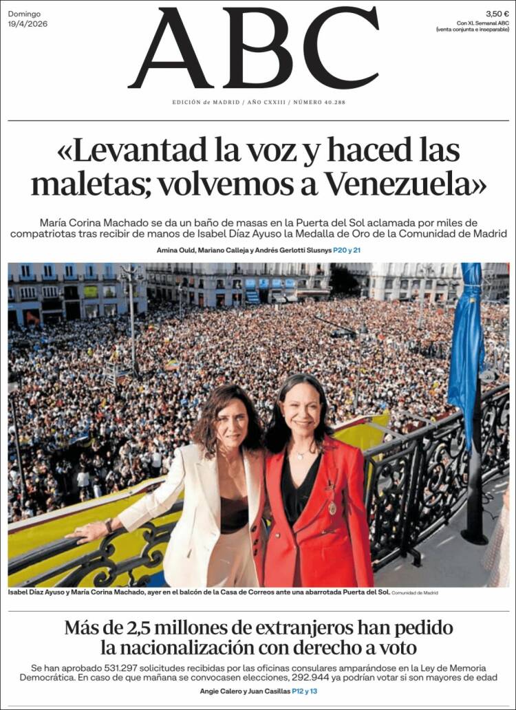 Portada del diario LA VERDAD DE MURCIA del día 19/04/2026