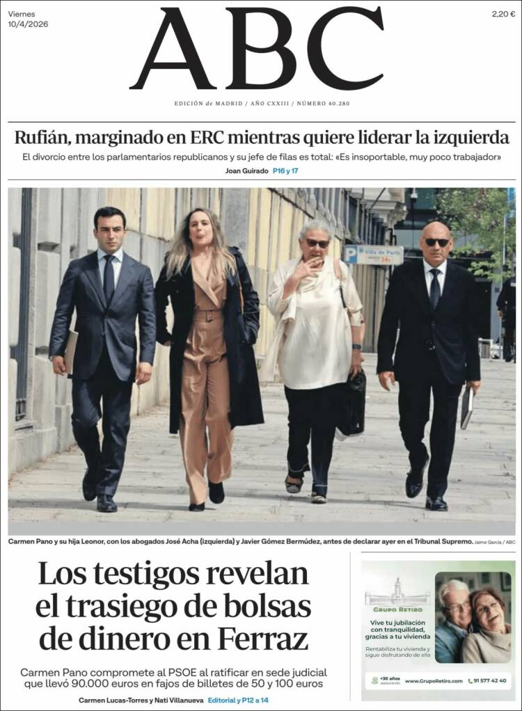 Portada del diario ABC del día 10/04/2026