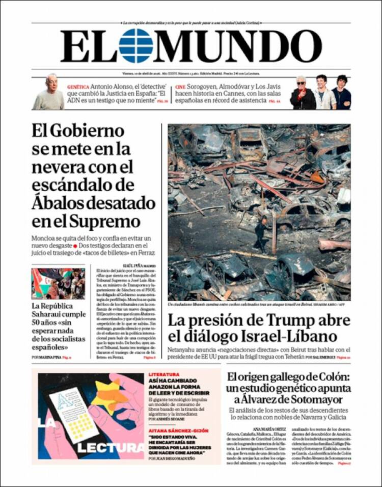 Portada del diario EL MUNDO del día 10/04/2026