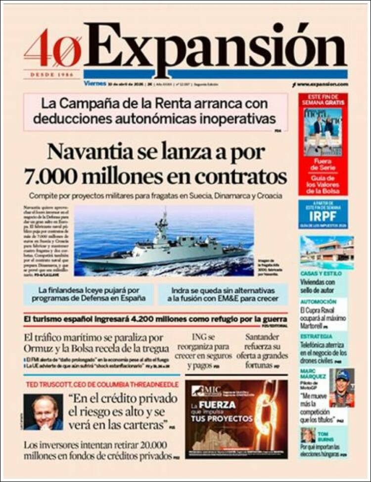Portada del diario EXPANSIÓN del día 10/04/2026