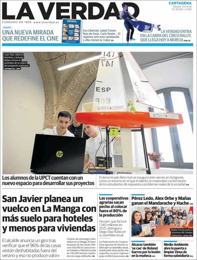 Portada del diario LA VERDAD DE CARTAGENA del día 24/04/2026