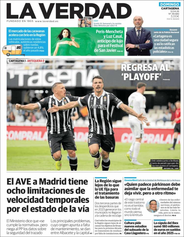 Portada del diario LA VERDAD DE CARTAGENA del día 12/04/2026