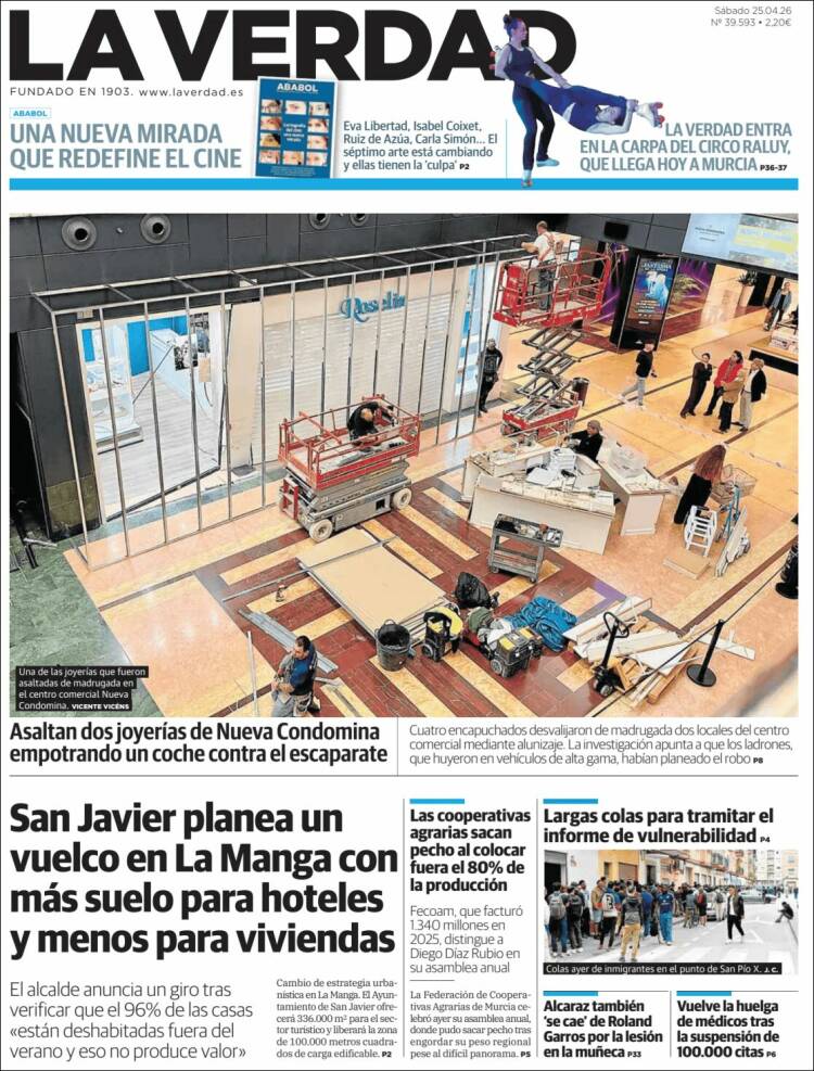 Portada del diario LA VERDAD DE MURCIA del día 24/04/2026