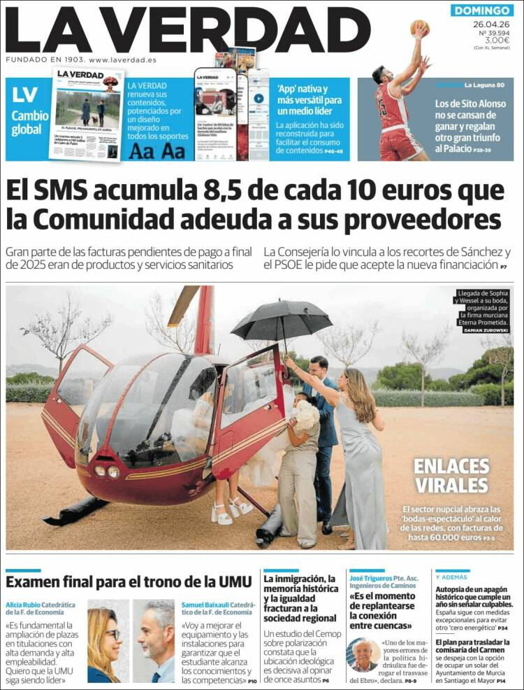 Portadadel diario LA VERDAD DE MURCIA del día 22/04/2026