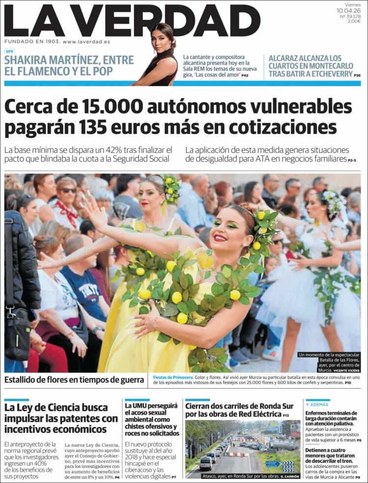 Portada del diario LA VERDAD DE MURCIA del día 10/04/2026