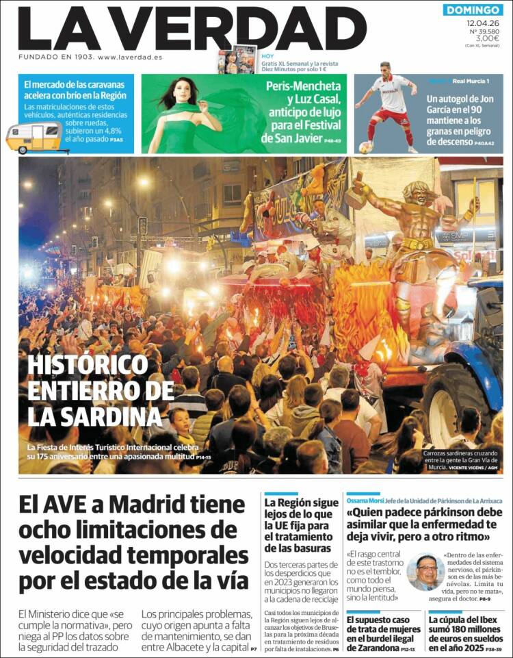 Portada del diario LA VERDAD DE MURCIA del día 12/04/2026