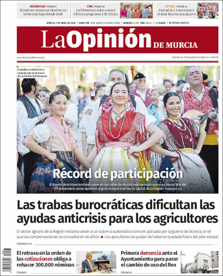 Portada del diario LA OPINIÓN DE MURCIA del día 7/04/2026