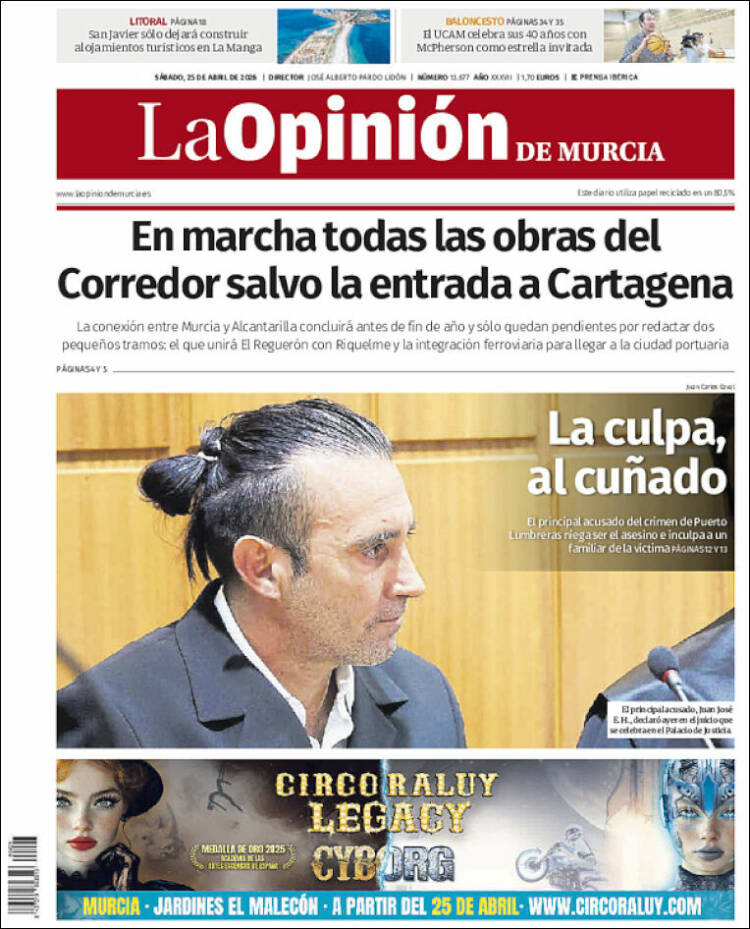 Portada del diario LA OPINIÓN DE MURCIA del día 24/04/2026