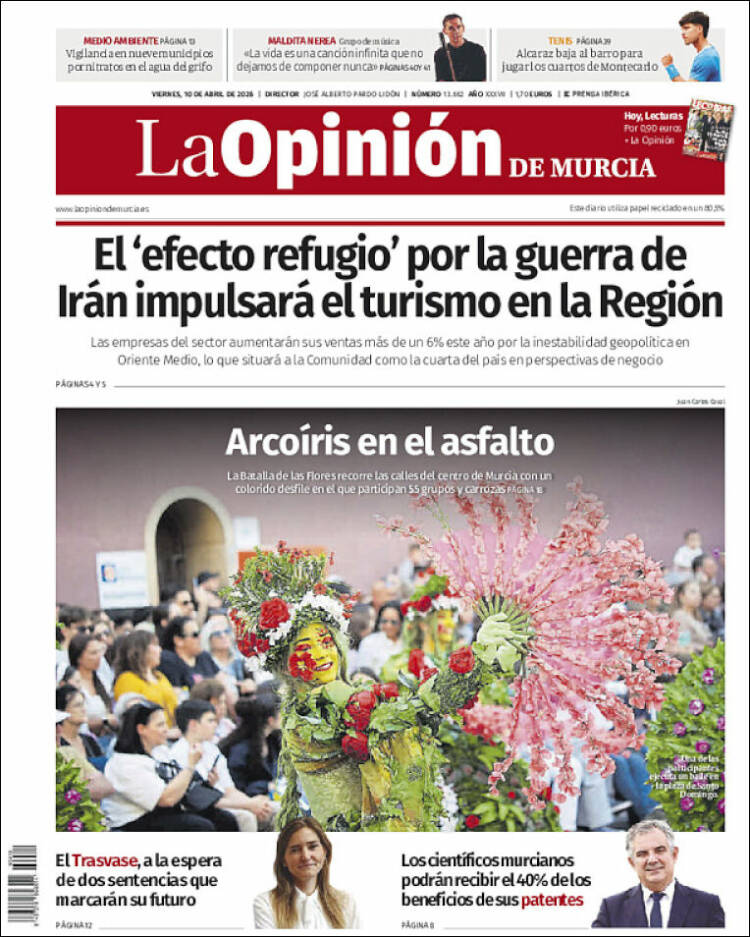 Portada del diario LA OPINIÓN DE MURCIA del día 10/04/2026