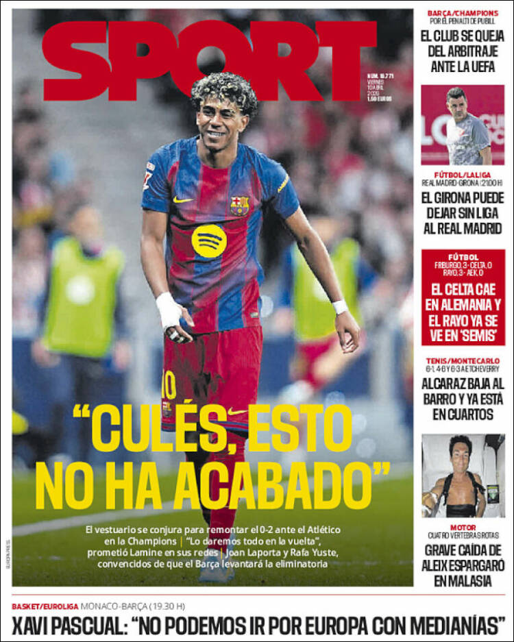 Portada del diario deportivo SPORT del día 10/04/2026