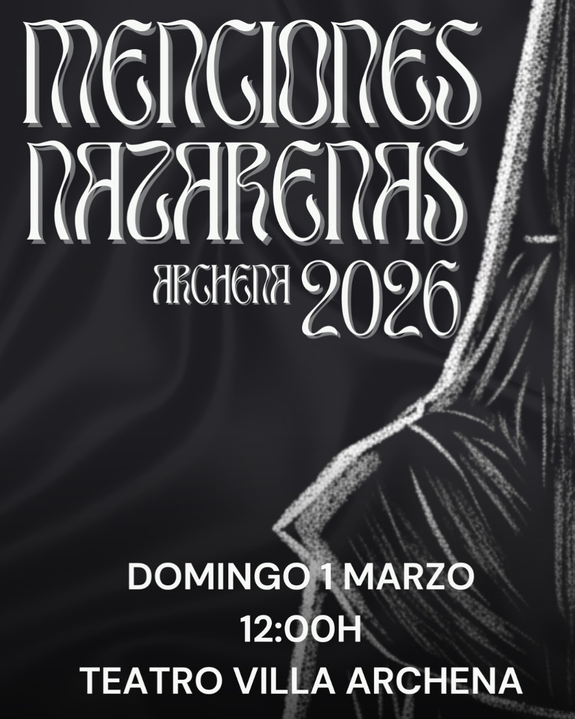 A continuación, tendrá lugar la entrega de Menciones Nazarenas, reconociendo la dedicación y el compromiso con nuestra Semana Santa en el Teatro Villa de Archena.