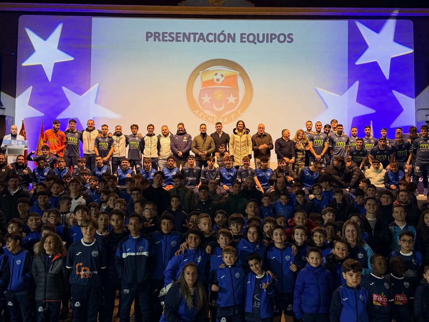 La alcaldesa de Archena, Patricia Fernández, presidió el acto de presentación del Archena F.C., un evento que reunió a más de 5️⃣5️⃣0️⃣ niñ@s y jóvenes de todas las categorías del club.