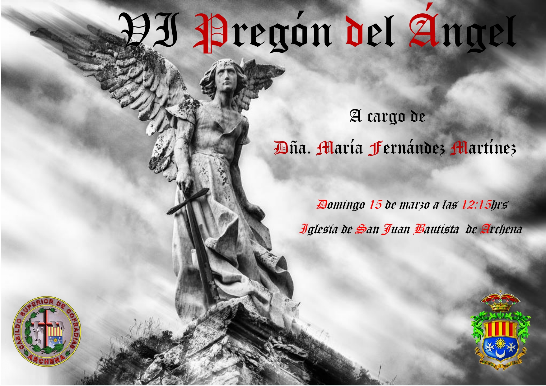 El Cabildo Superior de Cofradías y Hermandades, en colaboración con el Ayuntamiento de Archena les invita al Pregón de Juventud que se celebrará D.M. el próximo domingo día 15 de marzo a las 12:15 horas a cargo de Doña María Fernández Martínez en la Iglesia Parroquia San Juan Bautista de Archena. Quedan todos invitados.