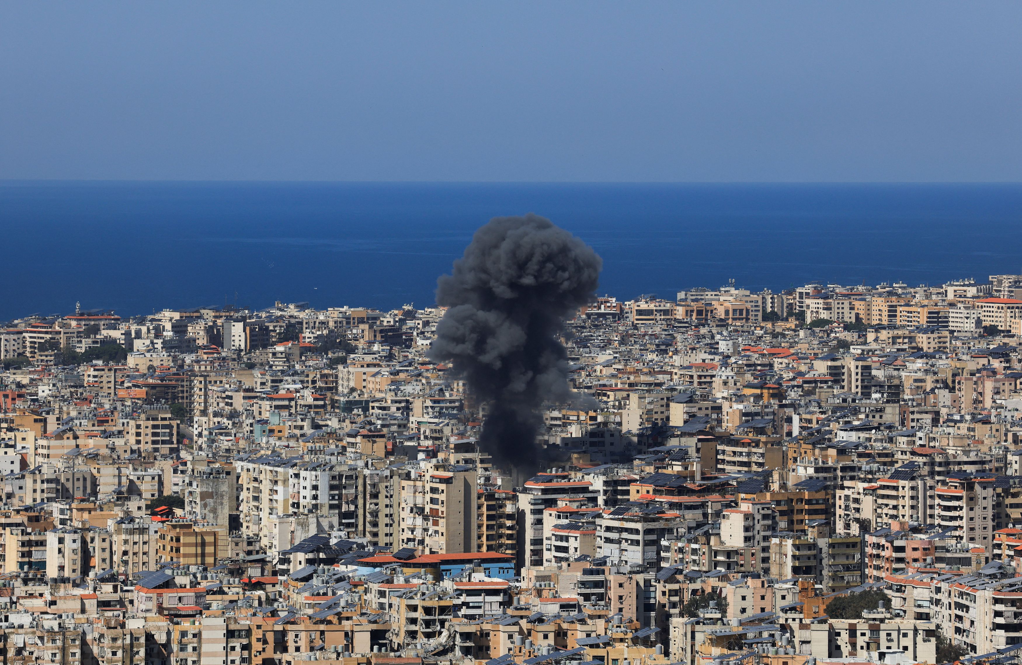 Columna de humo tras un ataque israelí este miércoles en los suburbios del sur de Beirut