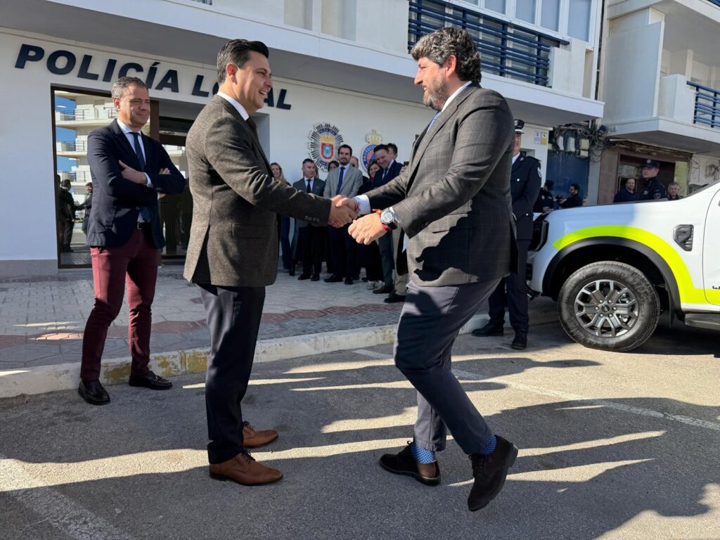 Fernando López Miras remarcó la apuesta del Gobierno regional por la Seguridad y su apuesta por la Policía Local de la Región de Murcia. En este sentido recordó que “en los últimos dos años hemos destinado casi un millón y medio de euros a la Policía Local de San Javier”. Precisamente en el mismo acto se expusieron distintos vehículos y medios que se han adquirido a través de las subvenciones recibidas desde el Gobierno regional, como un vehículo 4X4 que facilitará el acceso a zonas de acceso más difícil, así como dos equipos de drones, tres motocicletas que se destinarán a La Manga del Mar Menor, entre otro material policial diverso.