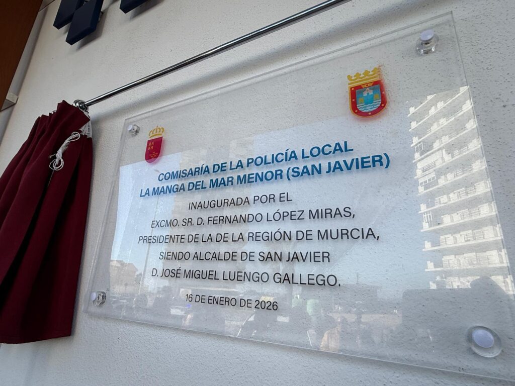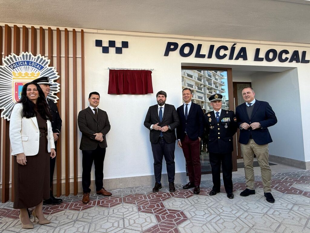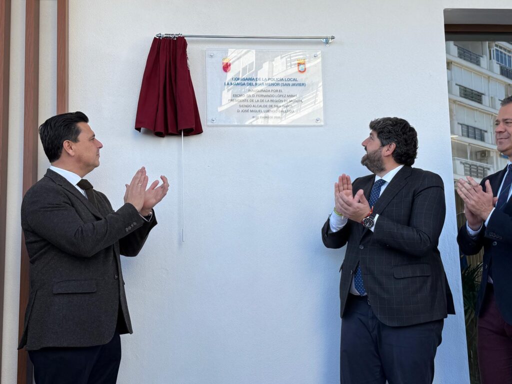 El presidente Fernando López Miras y el alcalde, José Miguel Luengo han inaugurado hoy la Comisaría de Policía Local de San Javier en La Manga del Mar Menor, ubicada en el edificio Manga Beach, en el kilómetro 6,5 de la Gran Vía. La comisaría, que dará servicio las 24 horas, permite dotar a la localidad de un servicio inexistente hasta ahora con unas instalaciones de 230 metros cuadrados y una plantilla adscrita a la comisaría que se irá completando de manera progresiva hasta los 18 agentes.