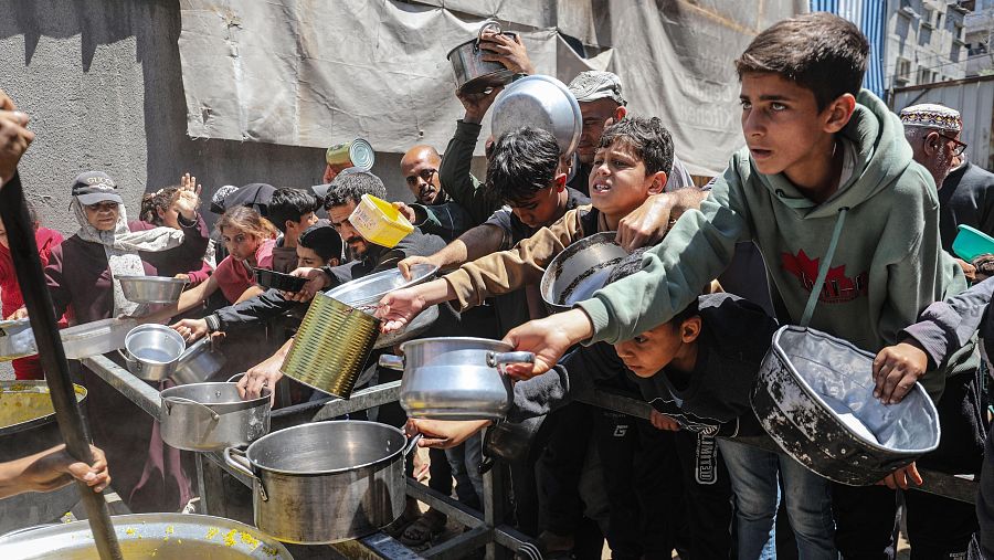 Niños esperan alimentos en Gaza por el bloqueo israelí y las restricciones a la entrada de ayuda humanitaria Getty Images