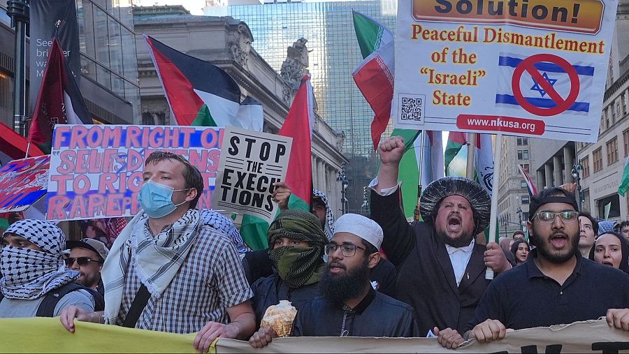 Manifestantes neoyorquinos durante recientes protestas contra las políticas del gobierno israelí Getty Images