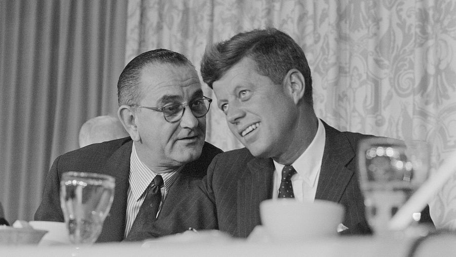 Lyndon Johnson hablando con John Kennedy durante una convención del Partido Demócrata en 1960 Getty Images