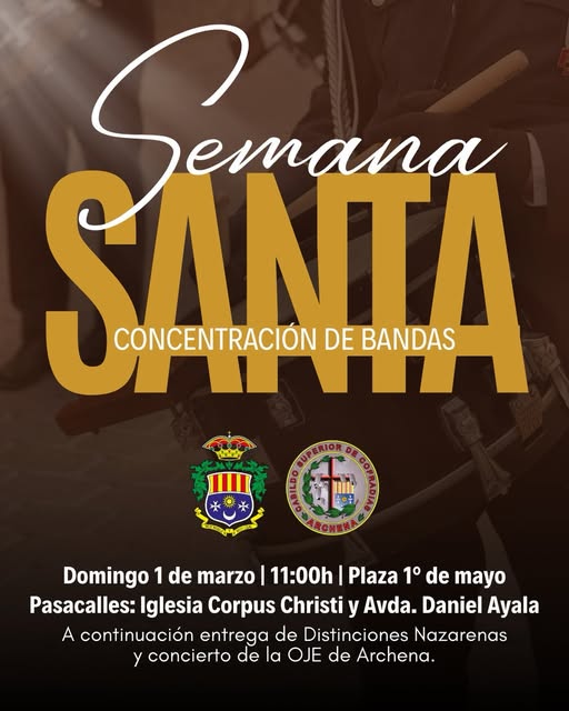 Este domingo tienes una cita muy especial con la música cofrade. News Europa25 febrero, 2026 Concentración de Bandas de Semana Santa en Archena