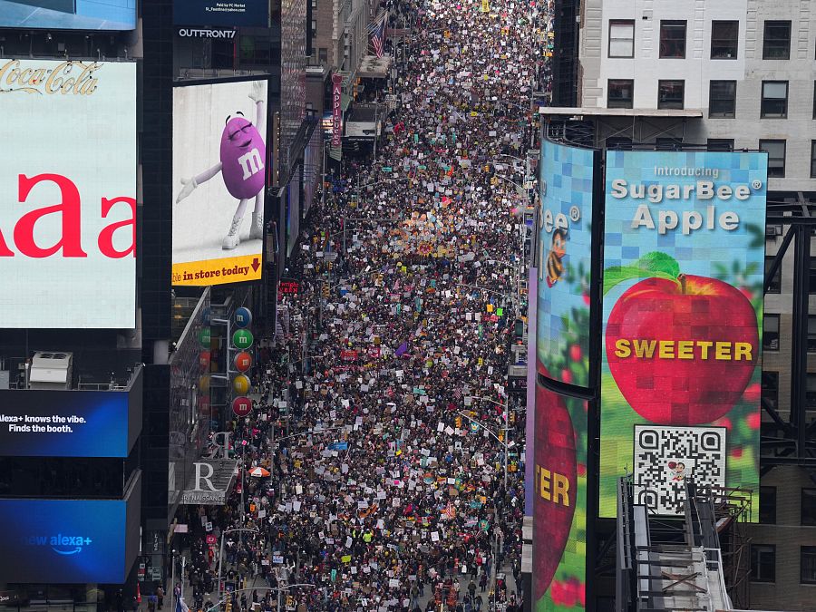 El rechazo a la gestión de Donald Trump vuelve a las calles de Estados Unidos bajo el lema de ‘No kings’ (No reyes). Hay convocadas más de 3.300 manifestaciones en la que es la mayor movilización hasta la fecha contra el gobierno, la guerra en Irán y el Servicio de Inmigración y Aduanas (ICE).