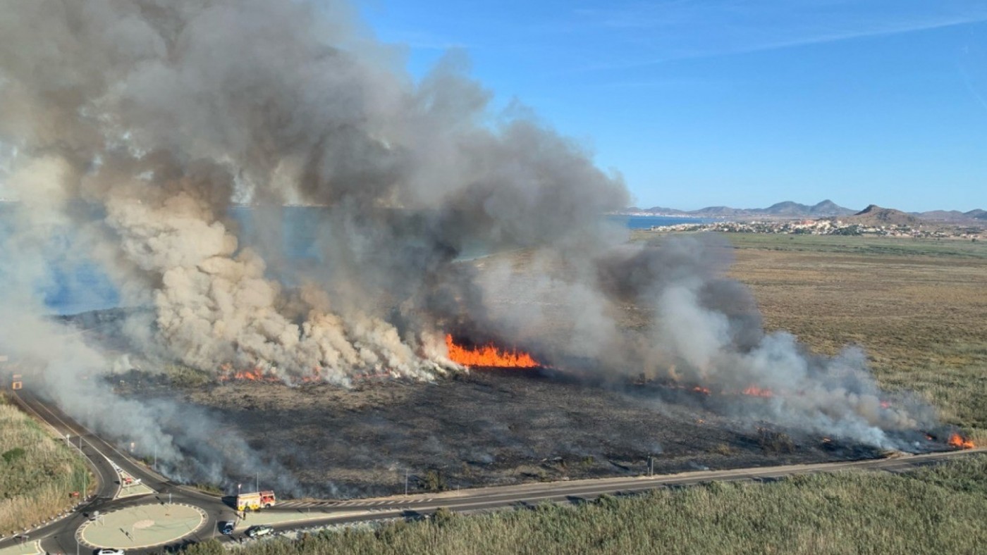 Controlado el incendio en las inmediaciones del humedal de El Carmolí, en Cartagena