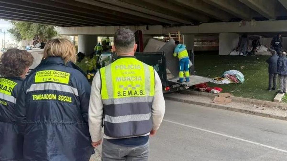 Desalojan de nuevo el campamento improvisado bajo el puente del Malecón de Murcia: «Sin piedad ni compasión»