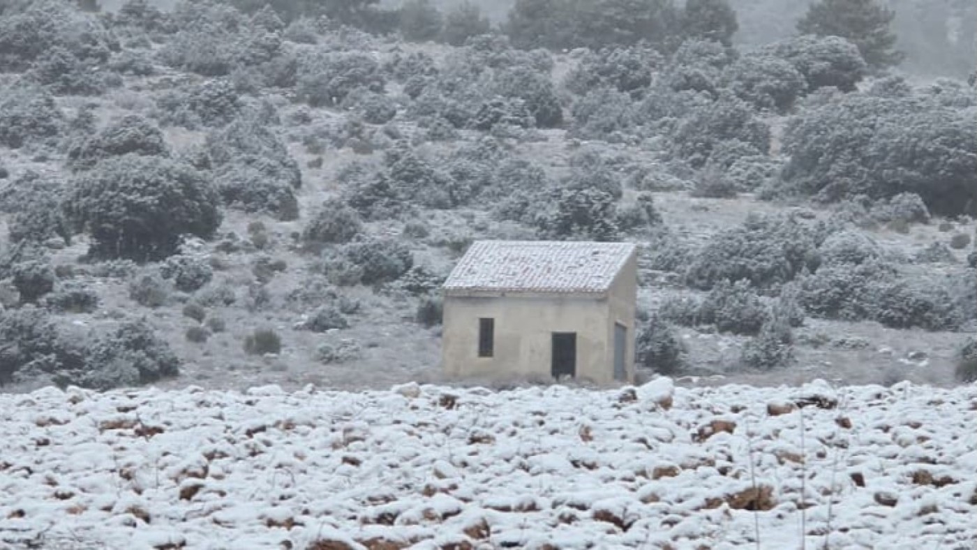 Los copos han caído a 1.500 metros de altitud en la Zona de Puerto Alto, en la pedanía moratallera de Cañada de la Cruz, en pleno macizo de Revolcadores el…