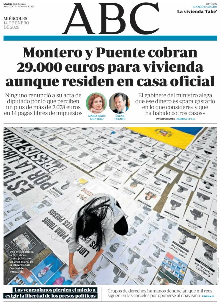 Portada del diario ABC del día 14/01/2026