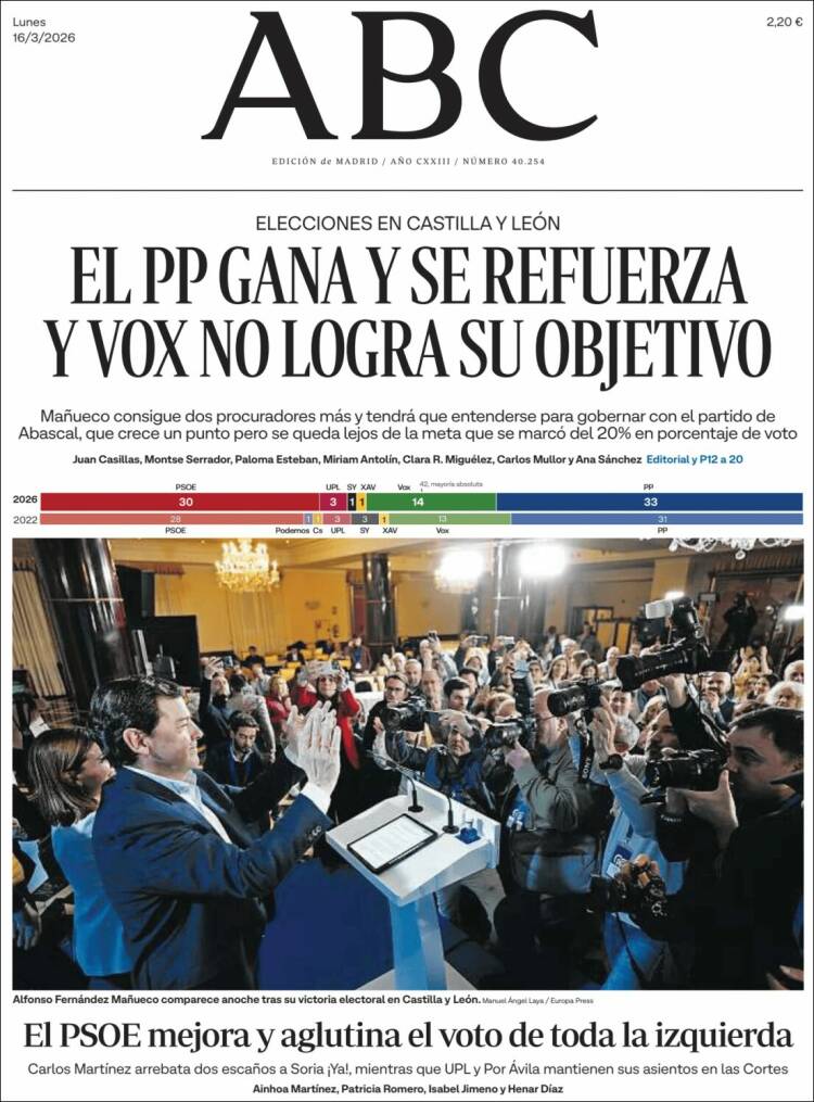 Portada del diario ABC del día 16/03/2026