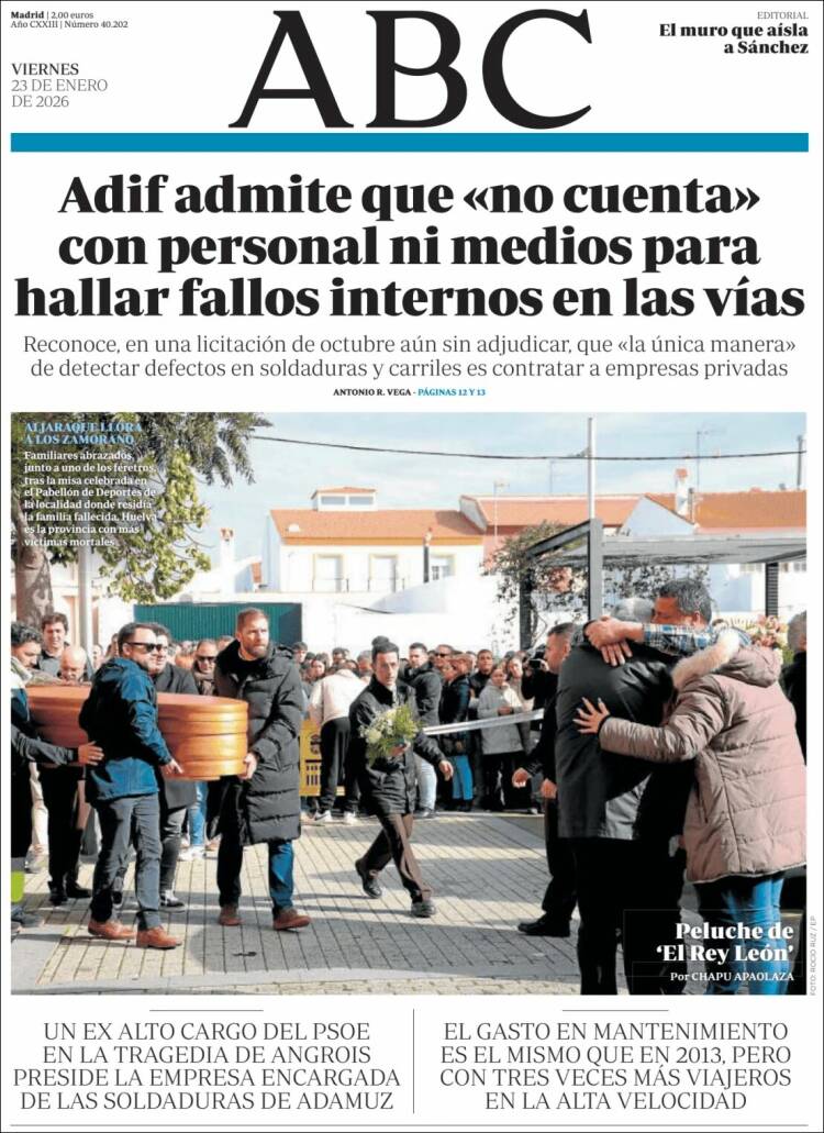 Portada del diario ABC del día 23/01/2026
