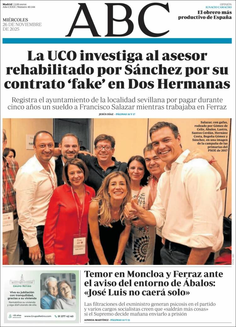 Portada del diario ABC del día 26/11/2025 News Europa26 noviembre, 2025 Portada del diario ABC del día 26/11/2025