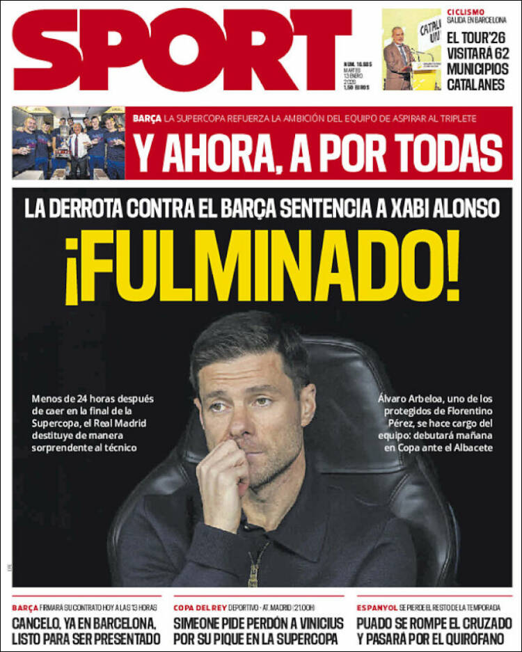 Portada del diario deportivo SPORT del día 13/01/2026 News Europa13 enero, 2026 Portada del diario deportivo SPORT del día 13/01/2026