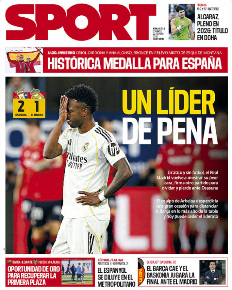 Portada del diario deportivo SPORT del día 22/02/2026 News Europa22 febrero, 2026 Portada del diario deportivo SPORT del día 22/02/2026