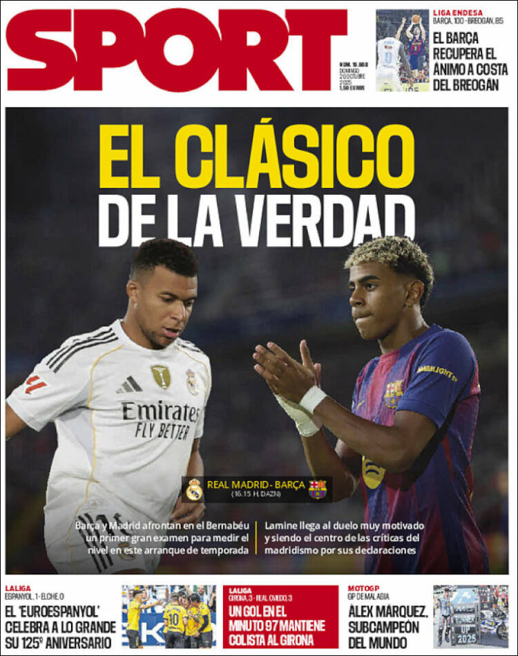 Portada del diario deportivo SPORT del día 26/10/2025