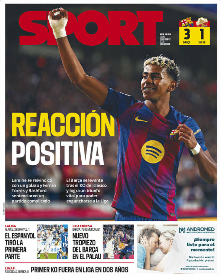 Portada del diario deportivo SPORT del día 3/11/2025 News Europa3 noviembre, 2025 Portada del diario deportivo SPORT del día 3/11/2025