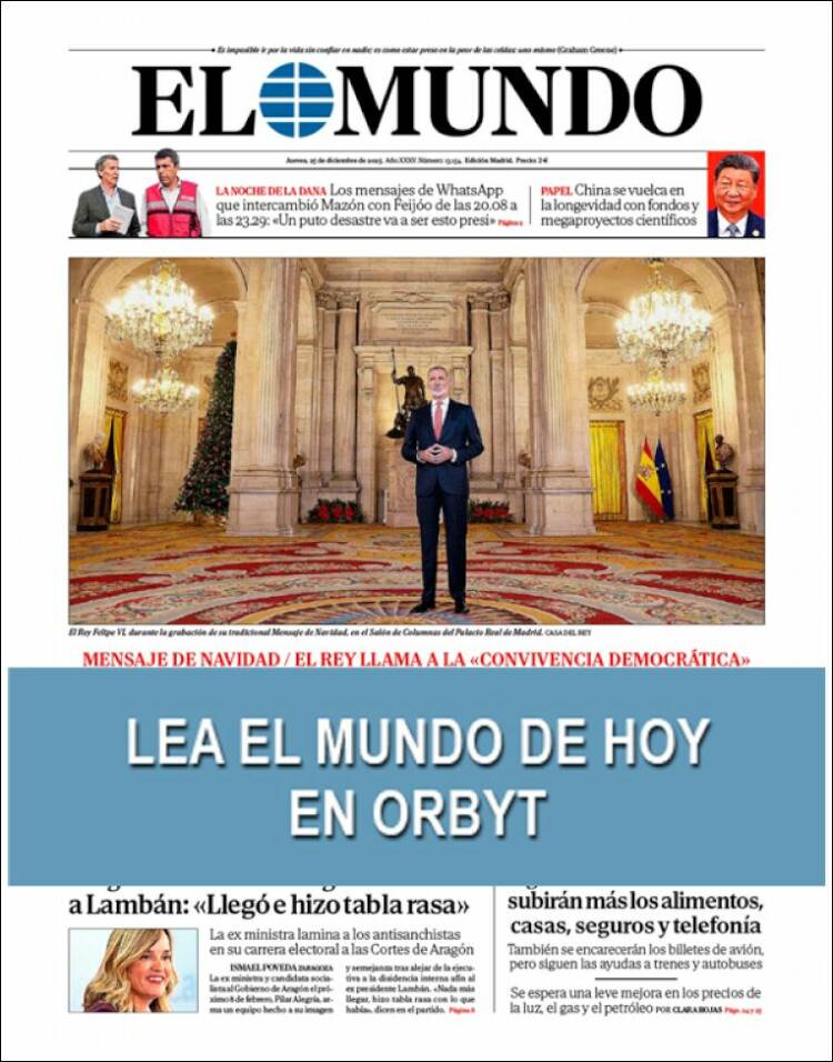 Portada del diario EL MUNDO del día 25/12/2025