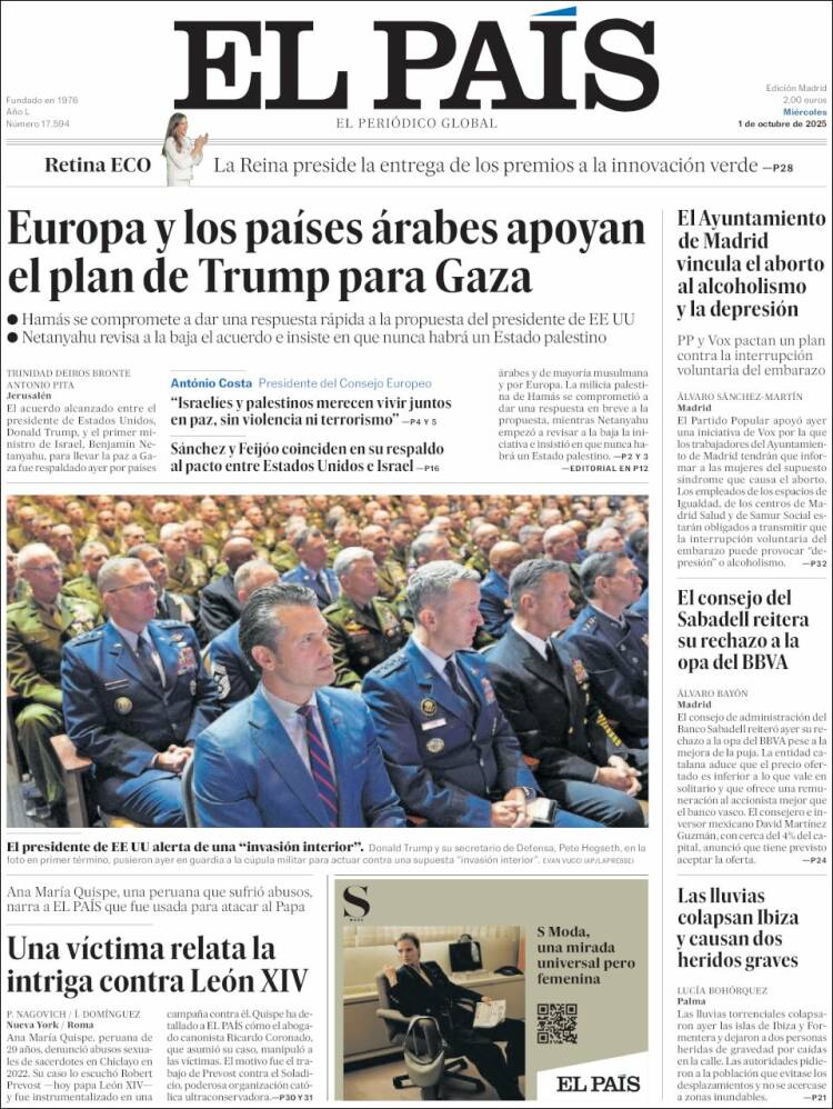 Portada del diario EL PAÍS del día 01/10/2025 News Europa1 octubre, 2025 Portada del diario EL PAÍS del día 01/10/2025
