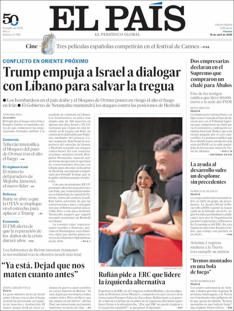 Portada del diario EL PAÍS del día 10/04/2026 News Europa10 abril, 2026 Portada del diario EL PAÍS del día 10/04/2026