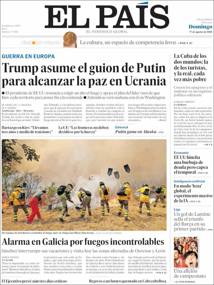 Portada del diario EL PAÍS del día 17/08/2025 News Europa17 agosto, 2025 Portada del diario EL PAÍS del día 17/08/2025