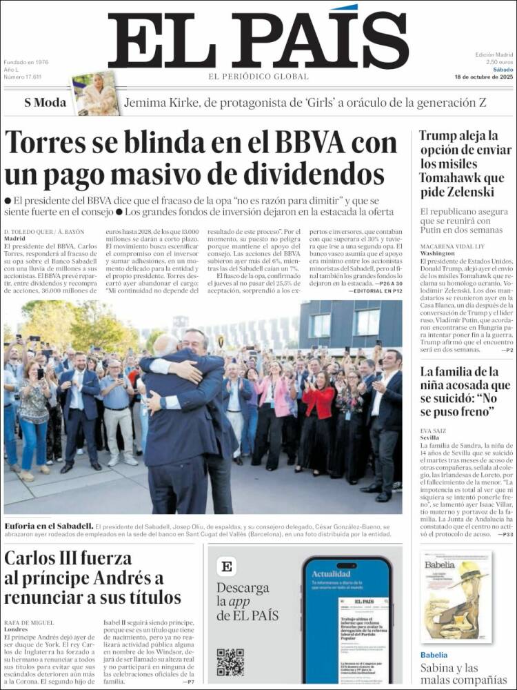 Portada del diario EL PAÍS del día 18/10/2025 News Europa18 octubre, 2025 Portada del diario EL PAÍS del día 18/10/2025