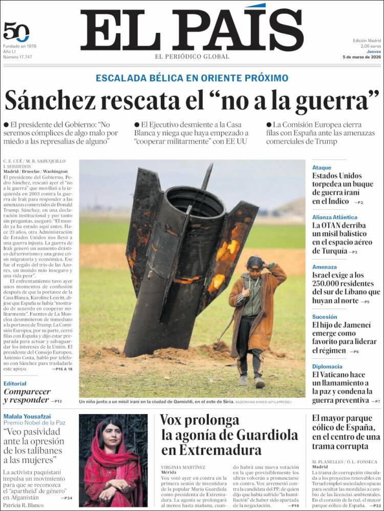 Portada del diario EL PAÍS del día 5/03/2026 News Europa5 marzo, 2026 Portada del diario EL PAÍS del día 5/03/2026