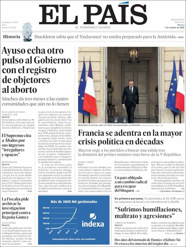 Portada del diario EL PAÍS del día 7/10/2025 News Europa7 octubre, 2025 Portada del diario EL PAÍS del día 7/10/2025